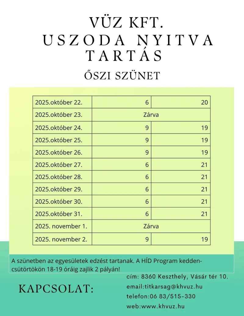 Csik Ferenc Tanuszoda tájékoztatás Tisztelt Látogatók! Tájékoztatjuk Önöket, hogy a Csik Ferenc Tanuszoda 2025. szeptember 15-én reggel 6 órától várja